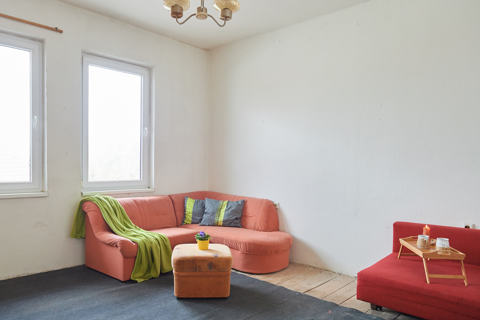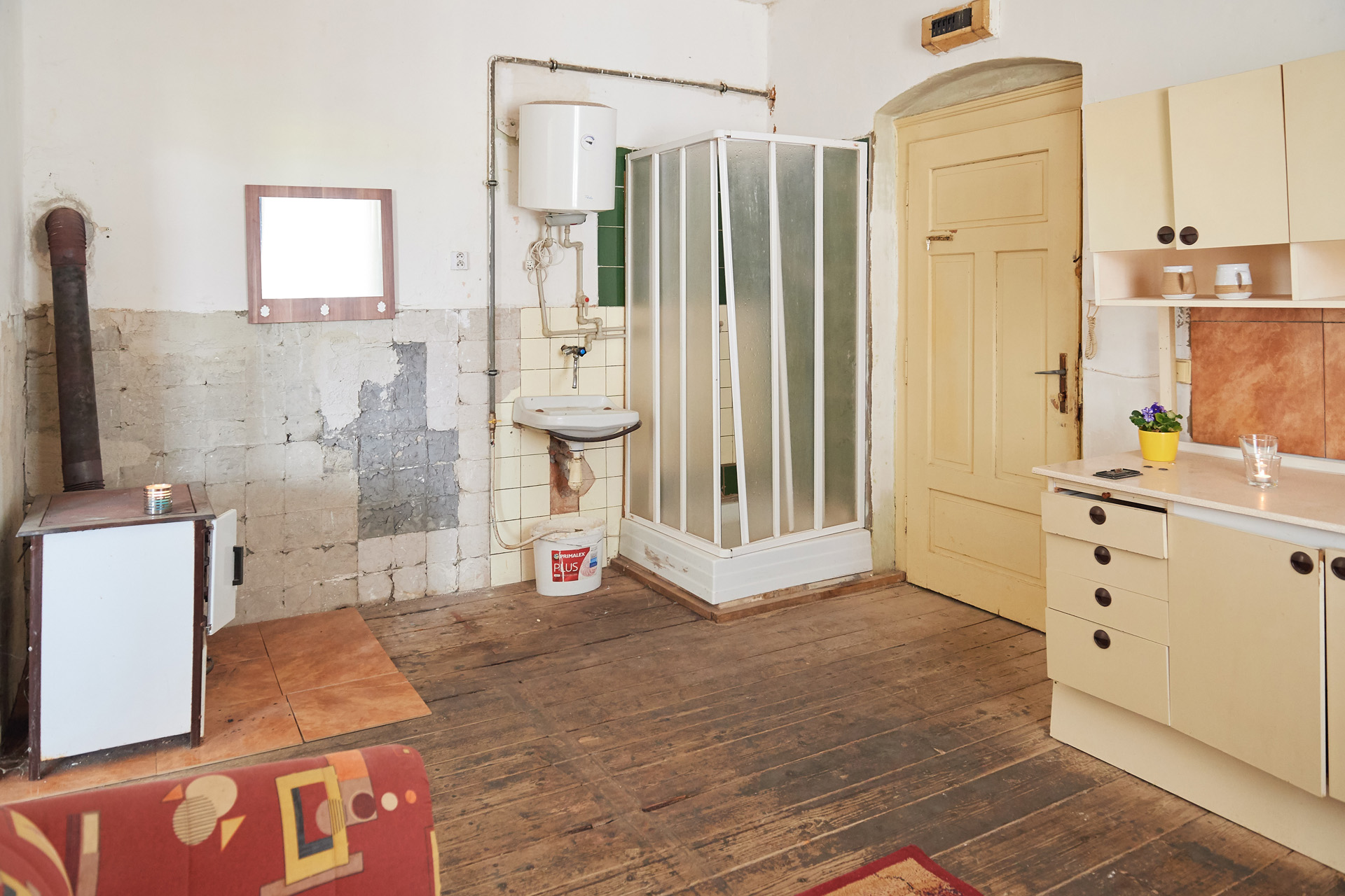 V bytě jsou nová plastová okna, ale jako takový je před rekonstrukcí – je do něj zavedena voda, elektřina a k bytu je přiveden plyn. Je nutné zde vybudovat koupelnu s WC a rozvody.