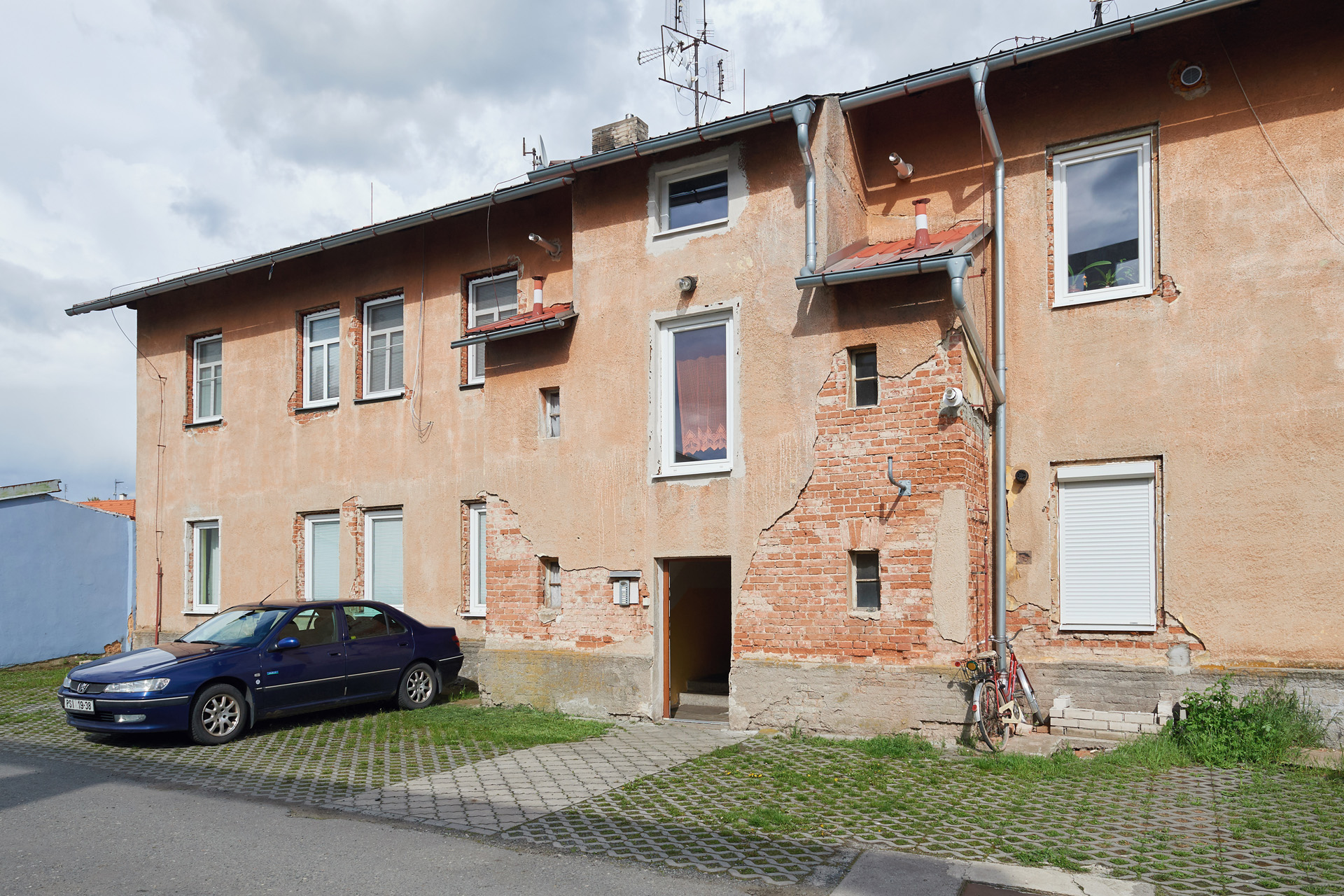 Byt se nachází v 1. patře činžovního cihlového domu z 20. let minulého století. Dům, který prošel částečnou rekonstrukcí, naleznete v centru obce v ulici Revoluční. Nedaleko je obchod s potravinami a smíšeným zbožím, pošta, zastávka autobusu, vlakové nádraží, knihovna a základní škola s MŠ.