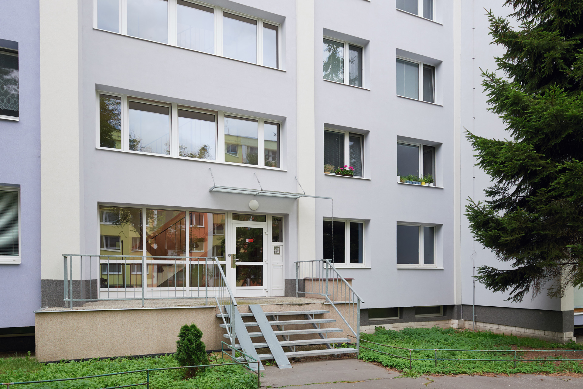 Byt se nachází ve druhém patře panelového bytového domu, který prošel v roce 2018 celkovou rekonstrukcí – zateplení budovy a střechy, nové rozvody vody, plynu a elektřiny, úpravy vstupního schodiště a úpravy ve vlastní kotelně řízené programovatelnou regulací. V domě je výtah.