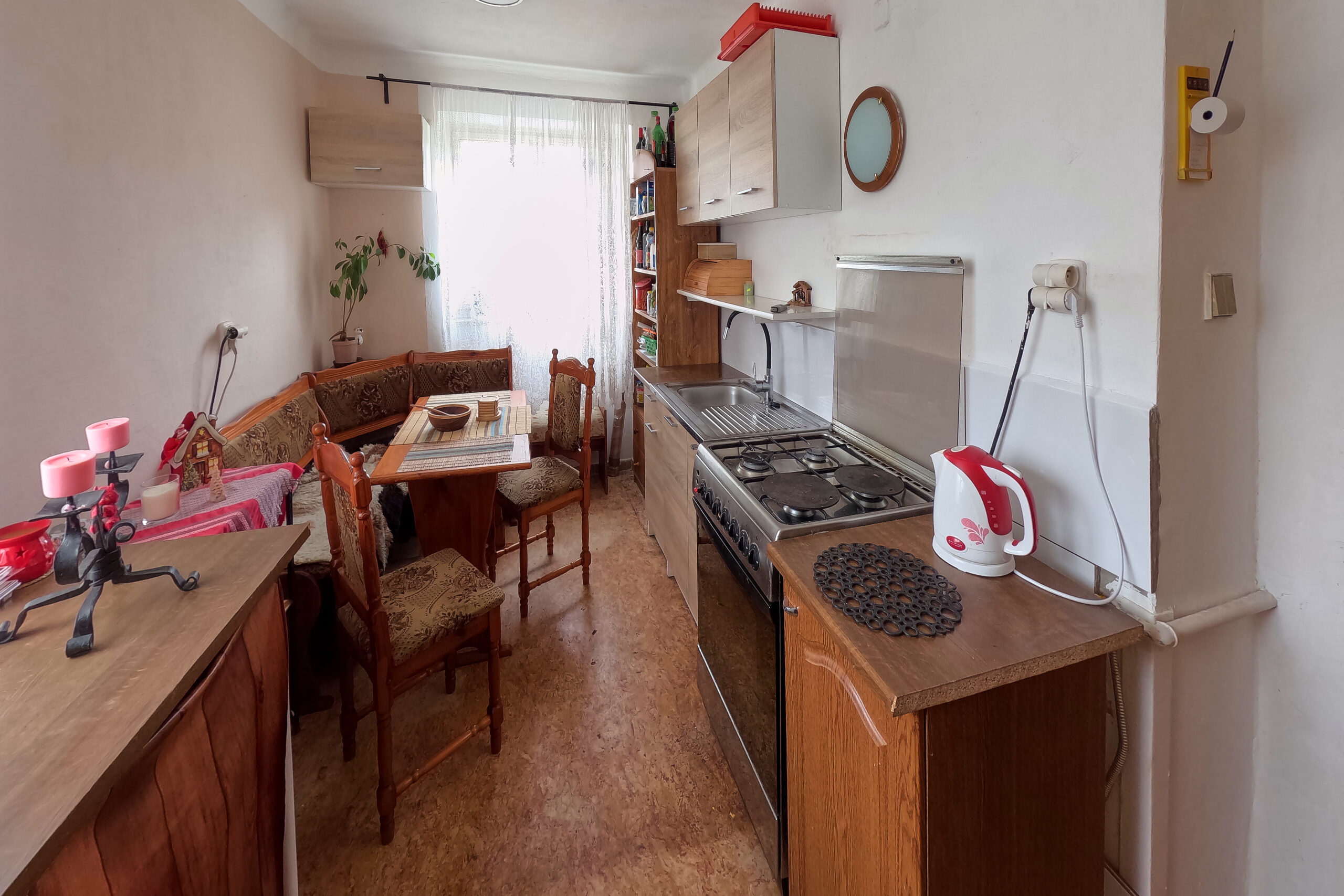 Byt určený k rekonstrukci se nachází ve 2. patře třípatrového cihlového domu, který prošel celkovou revitalizací. Udávaná podlahová plocha bytu je 54 m2, balkón 1,5 m2 a k dispozici jsou velkorysé sklepní prostory o velikosti 13 m2. Součástí bytu je také malá komora. V domě není výtah.