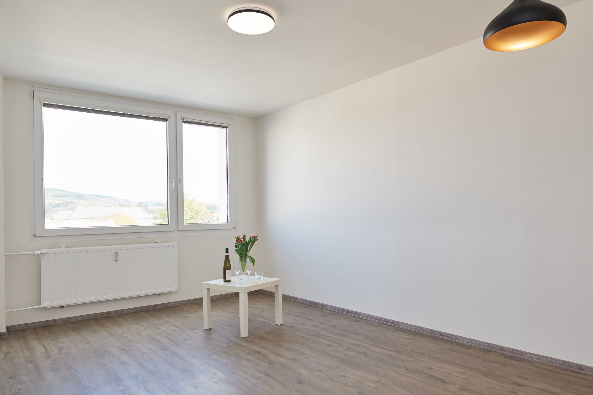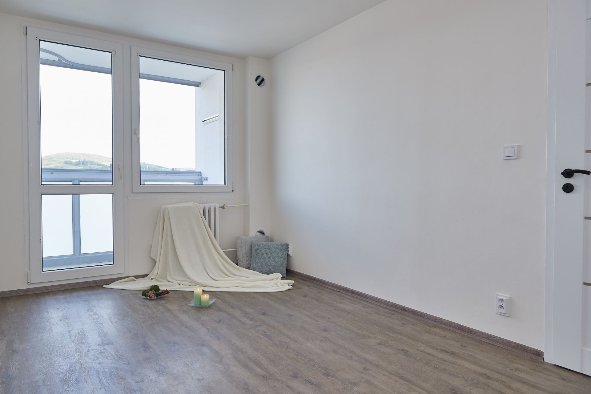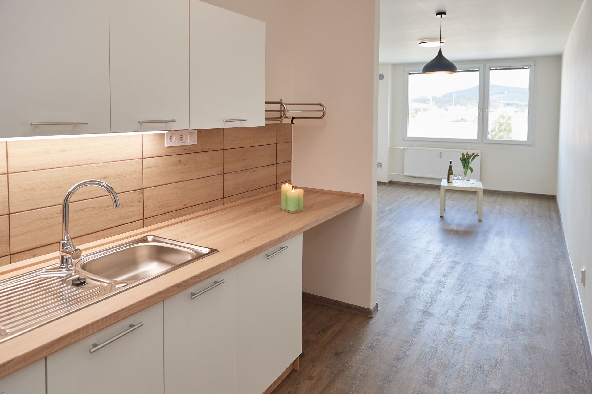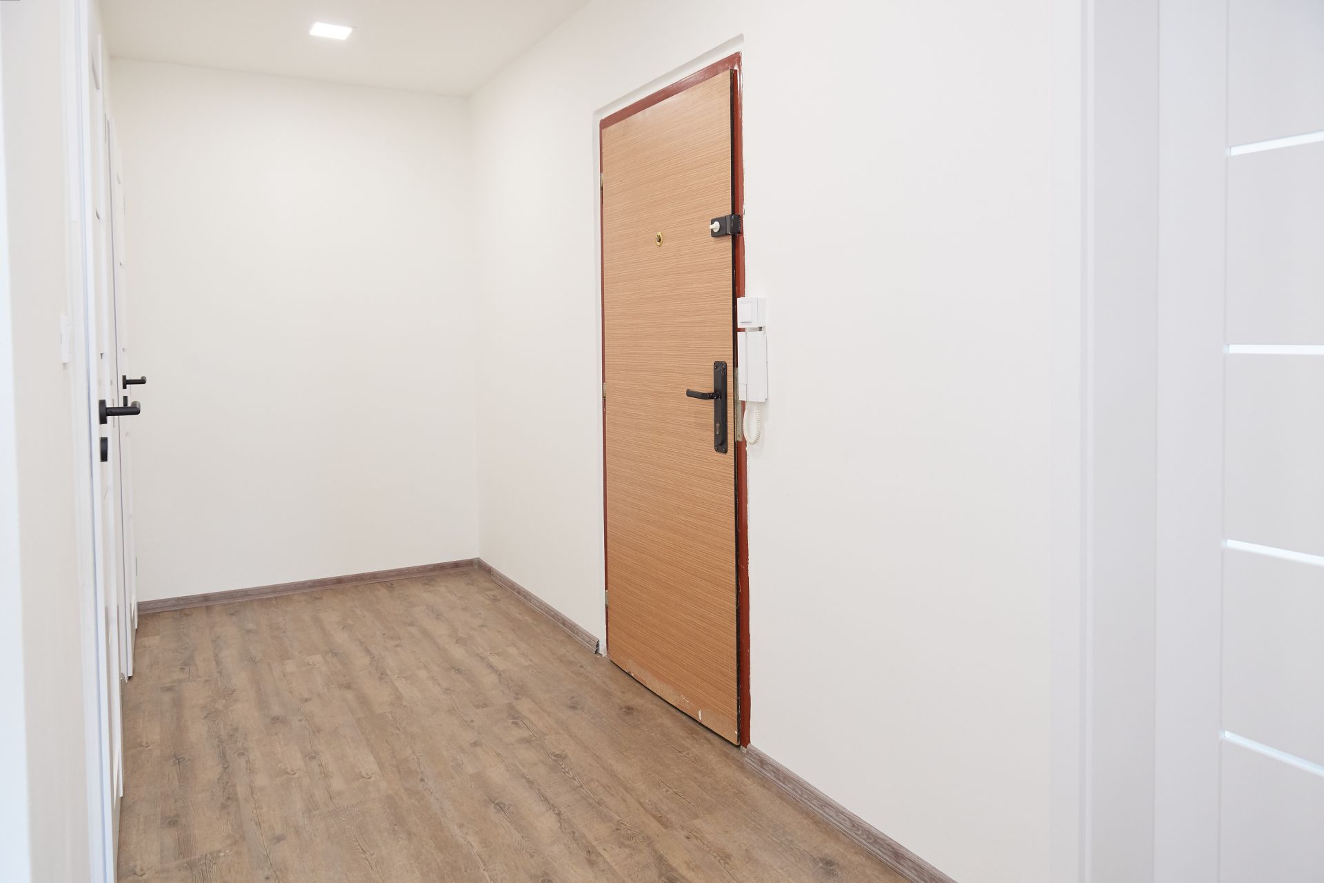 V bytě jsou plastová okna, nové rozvody elektřiny i vody a celý byt byl také nově vyštukován. Nové vinylové podlahy a bílé moderní dveře podtrhují celkový moderní vzhled bytu.