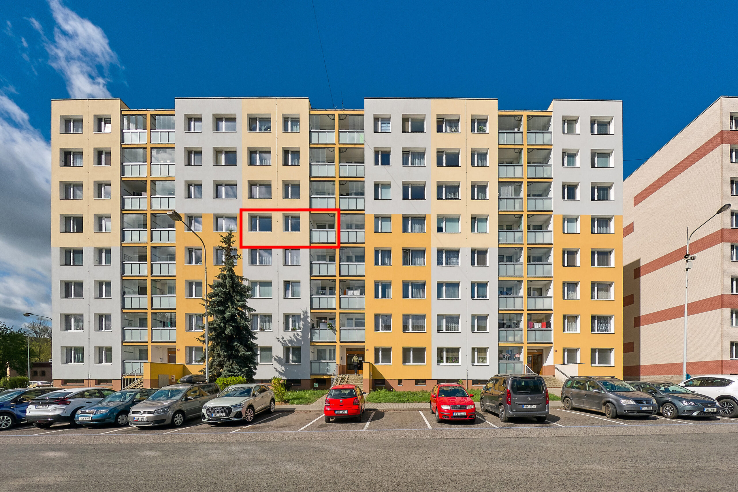 Byt po celkové rekonstrukci se nachází ve 4. patře osmipatrového panelového domu, který také prošel celkovou rekonstrukcí. Udávaná podlahová plocha bytu je 63 m2, prosklená lodžie 3 m2 a sklepní kóje 2 m2. V domě je výtah.