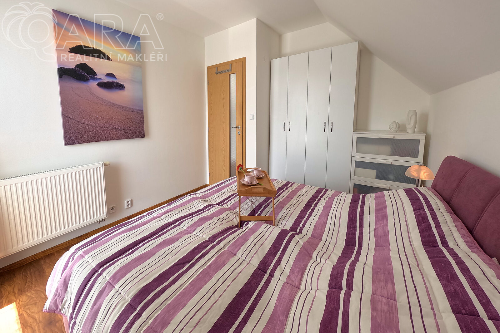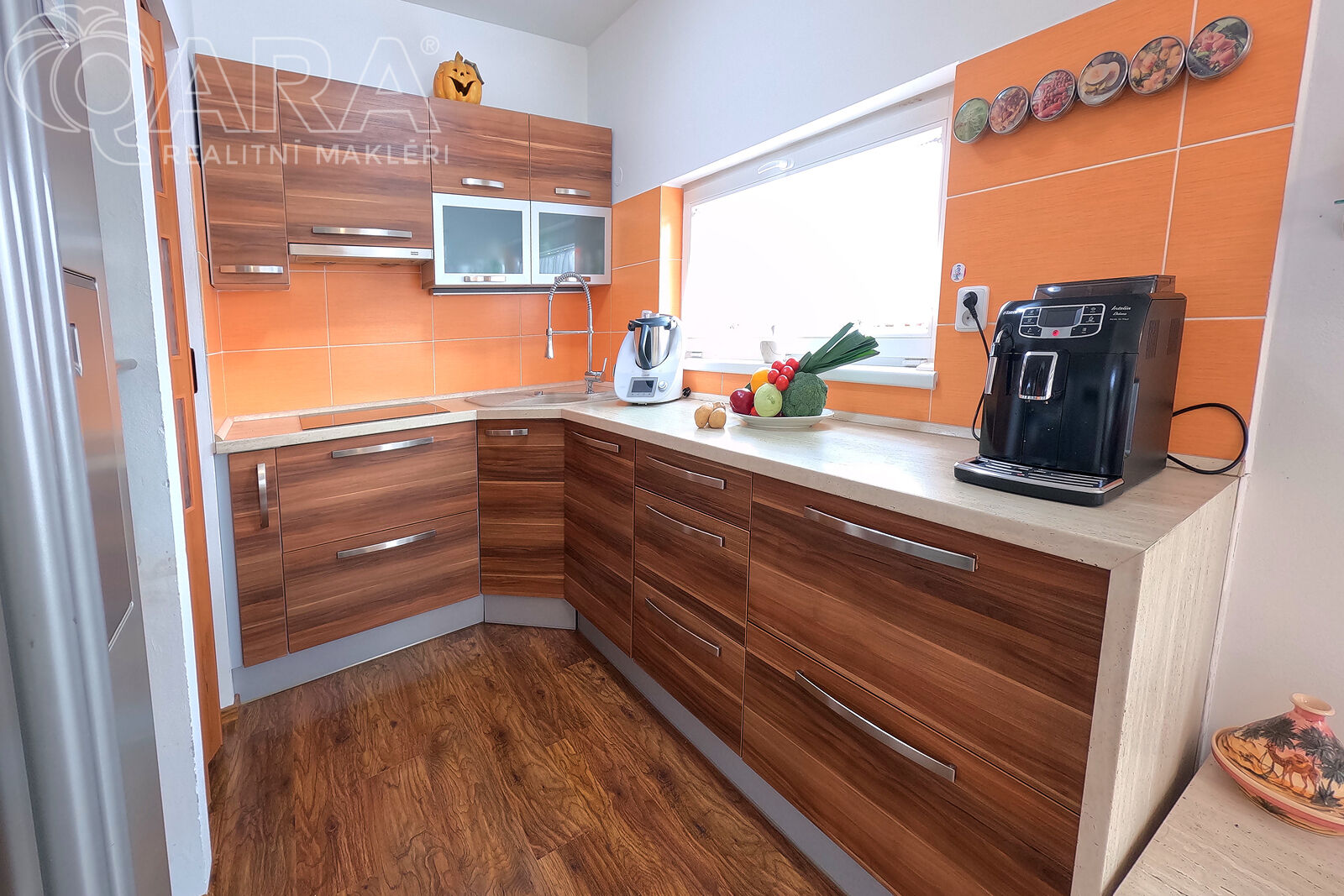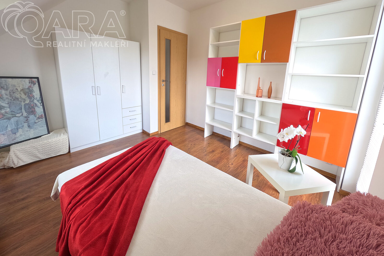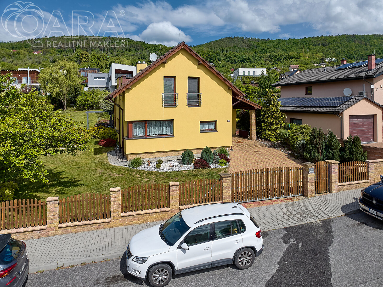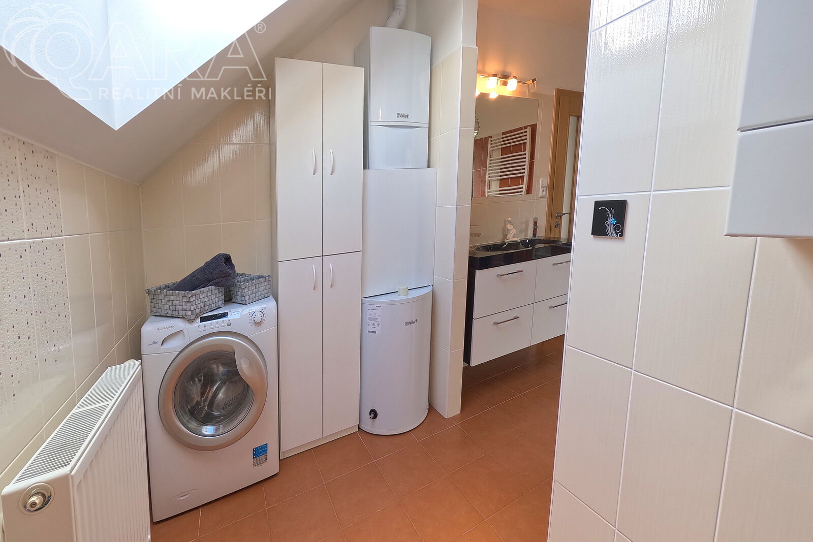Patrový dům s dispozicí 5+kk, garáží, dvěma koupelnami, šatnou, a především s krytým bazénem, leží na pozemku o velikosti 1060 m2 a nabízí komfort 234 m2 celkové užitné plochy – 215 m2 užitné plochy + 19 m2 garáž.