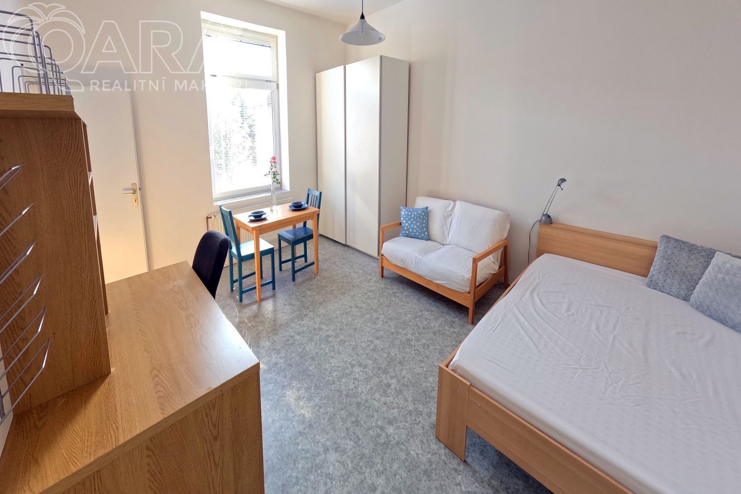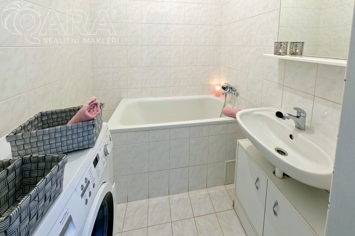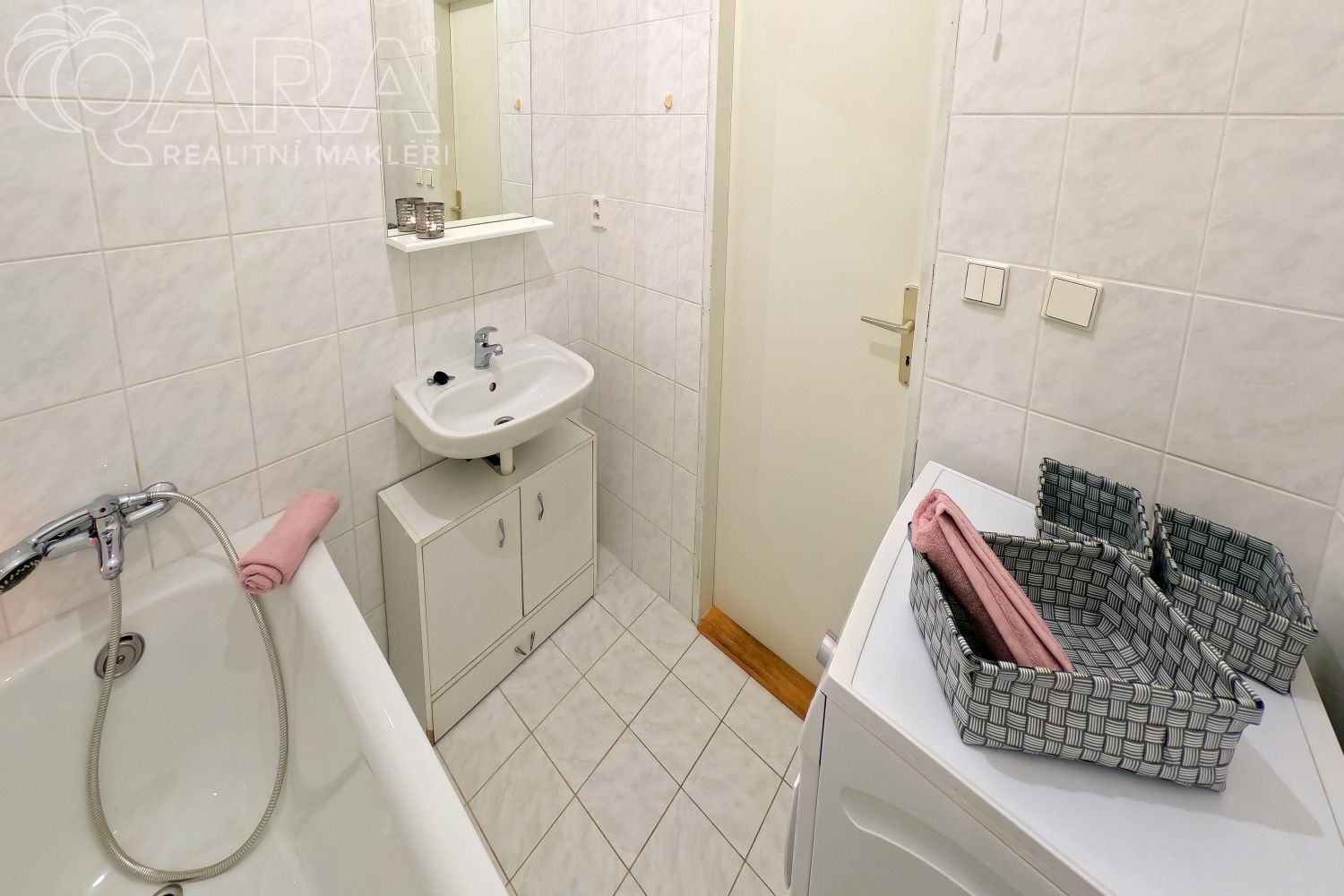 Zařízený byt o velikosti 37 m2 se nachází ve druhém podlaží bytového domu. Obývací pokoj a kuchyně jsou orientovány na jih. Kuchyňská linka je vybavena vestavěnou lednicí, indukční deskou na vaření a mikrovlnnou troubou. V pokoji je velká skříň, dvoulůžko, sedací souprava, jídelní a pracovní stůl. K dispozici je také vstupní chodba, koupelna s vanou a pračkou, a samostatné WC.