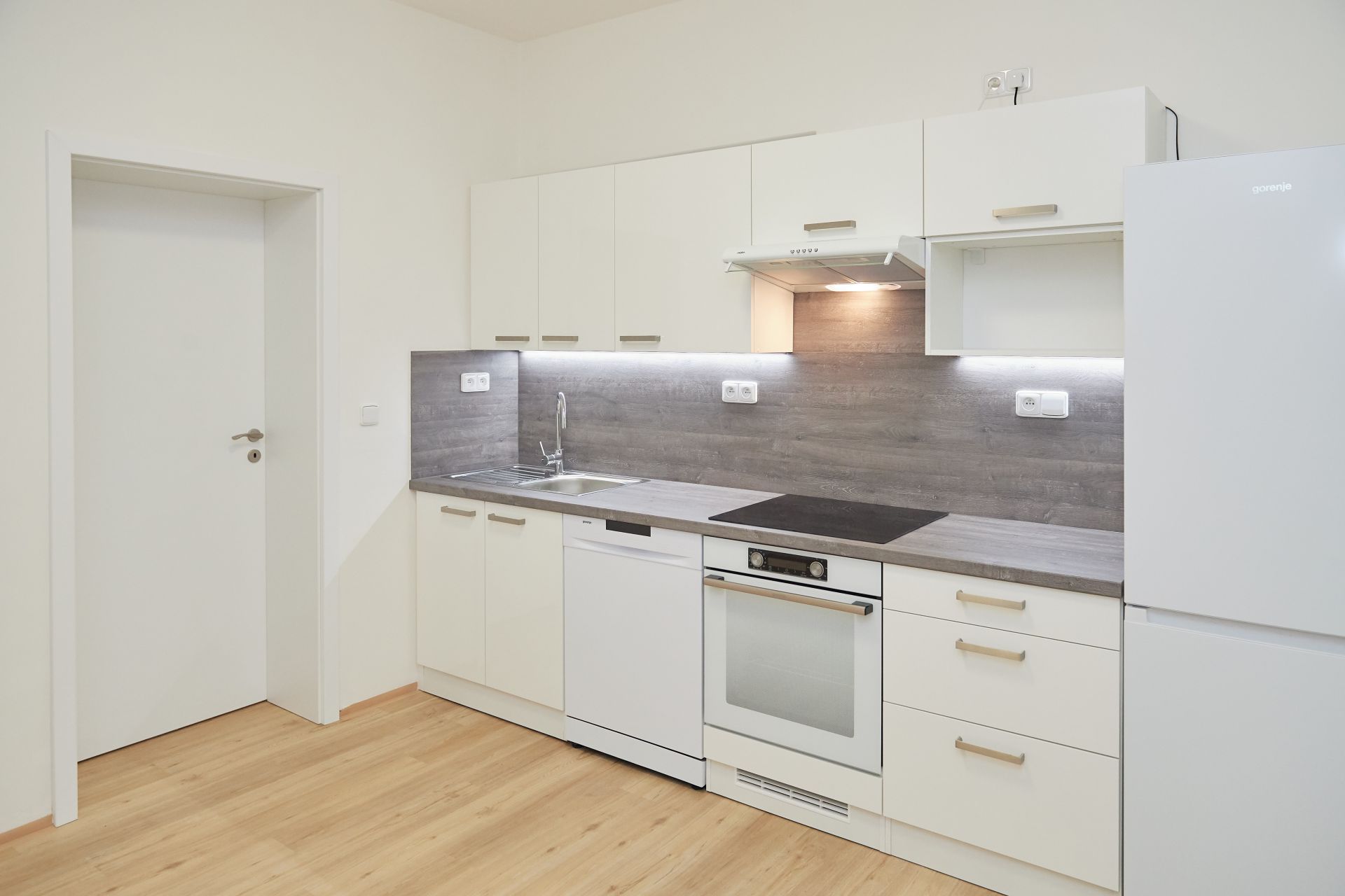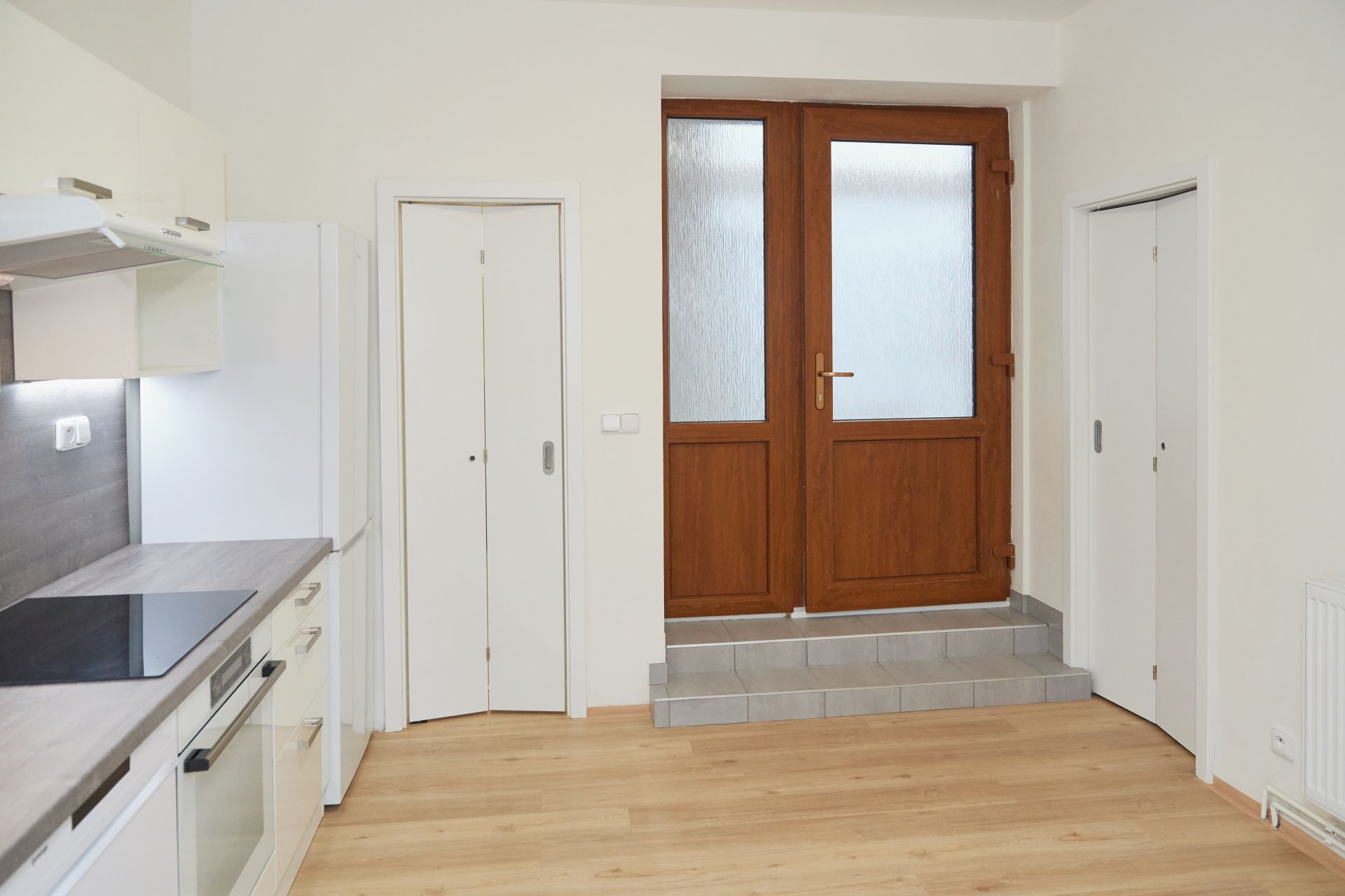 Moderně pojatý byt má velký obývací pokoj a kuchyň. Kuchyňská linka je vybavena vestavěnými spotřebiči – myčka, elektrická trouba, varná deska, digestoř a lednice. Okna bytu jsou orientována do ulice na jih. K dispozici je také komora a koupelna se sprchovým koutem a WC.