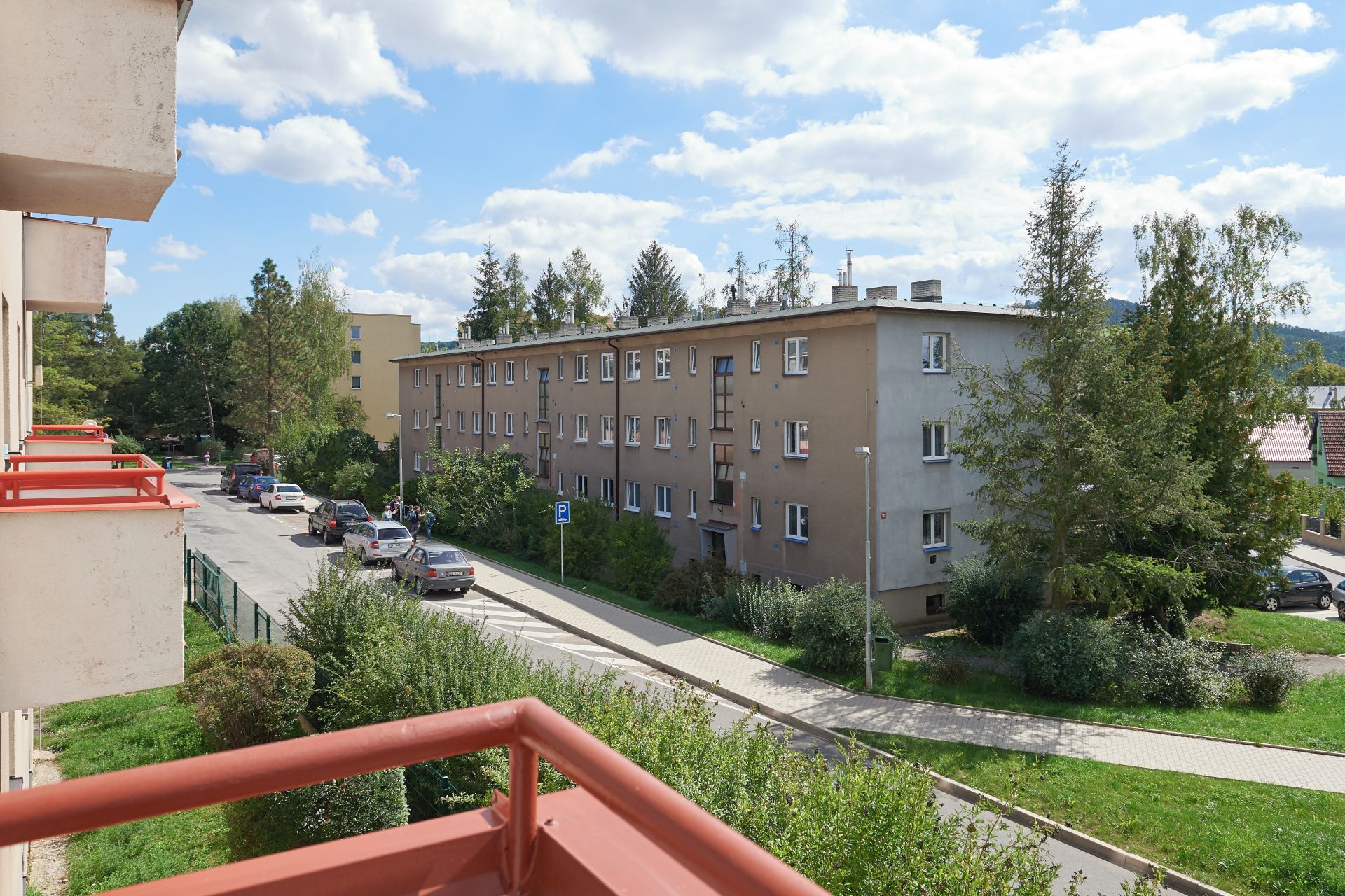 Byt o dispozici 3+1 se nachází ve druhém prostředním podlaží třípatrového cihlového obytného domu se zahradou, garážemi a s venkovním parkováním. K udávané ploše 60m2 náleží také balkón + 2m2 a dva sklepy o celkové ploše + 4m2.
