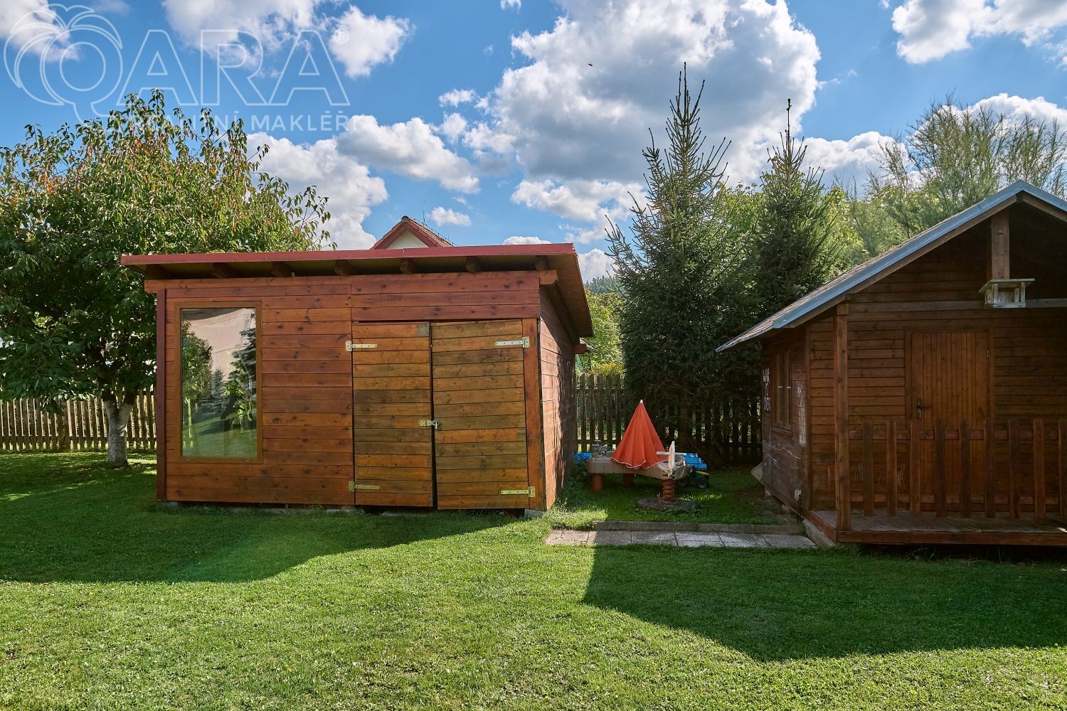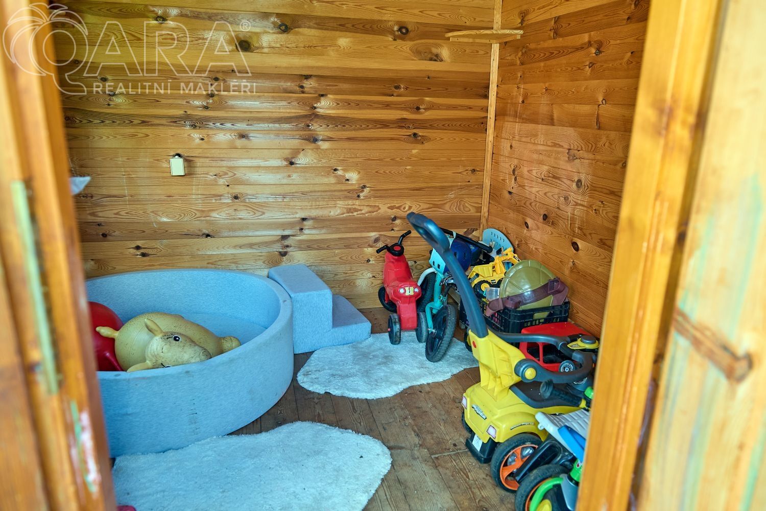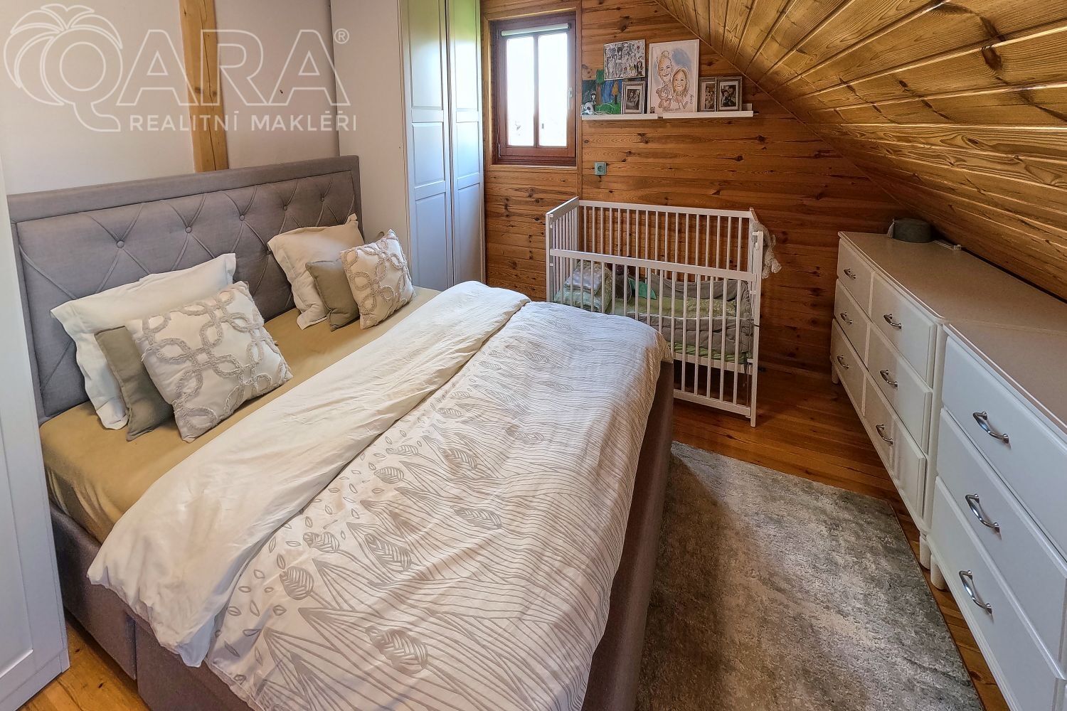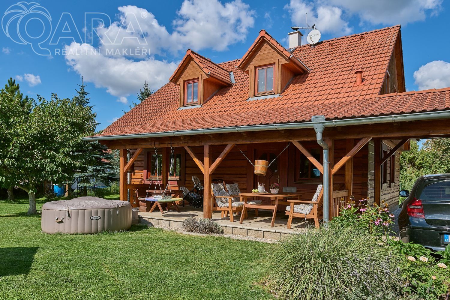 Tato roubenka byla zkolaudovaná v roce 2009 a v posledních dvou letech kompletně zrevitalizována. Nabízí komfort více jak 130 m2 celkové užitné plochy s dispozicí 4+kk a se dvěma koupelnami. Rovinatý pozemek nepravidelného tvaru o velikosti 1750 m2 je s láskou a péčí upravovaný. Nabízí ostrůvky okrasných rostlin, zeleninovou část i ovocné stromy. Je tu vybudované přírodní jezírko i malý bazén. K dispozici je také chatka pro děti, malý dřevěný sklad a samostatný dřevník.