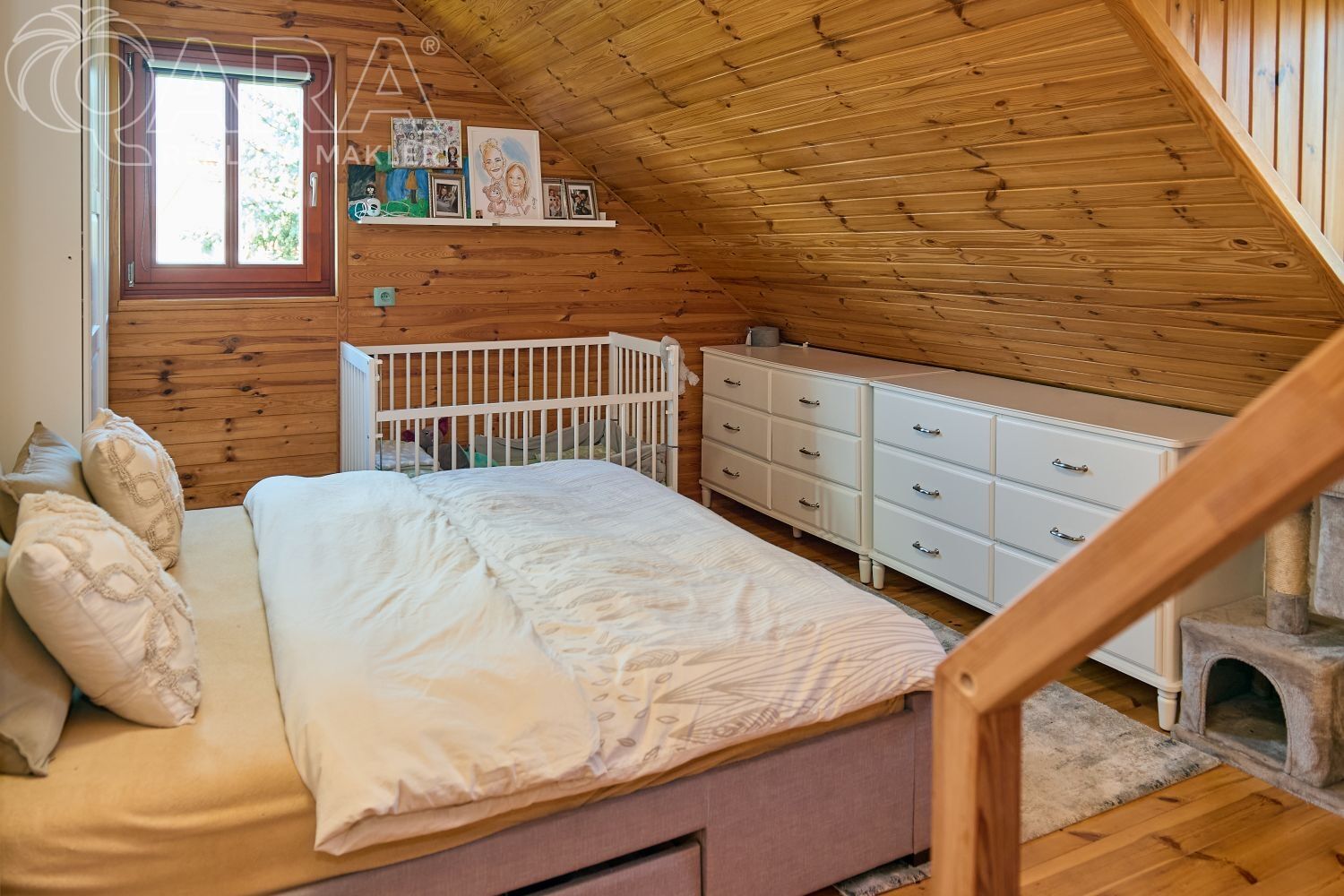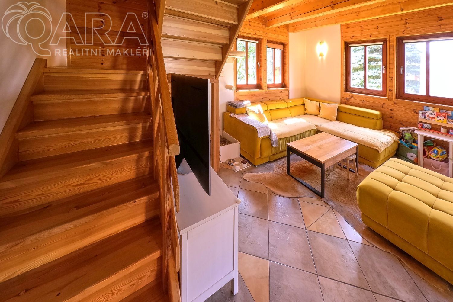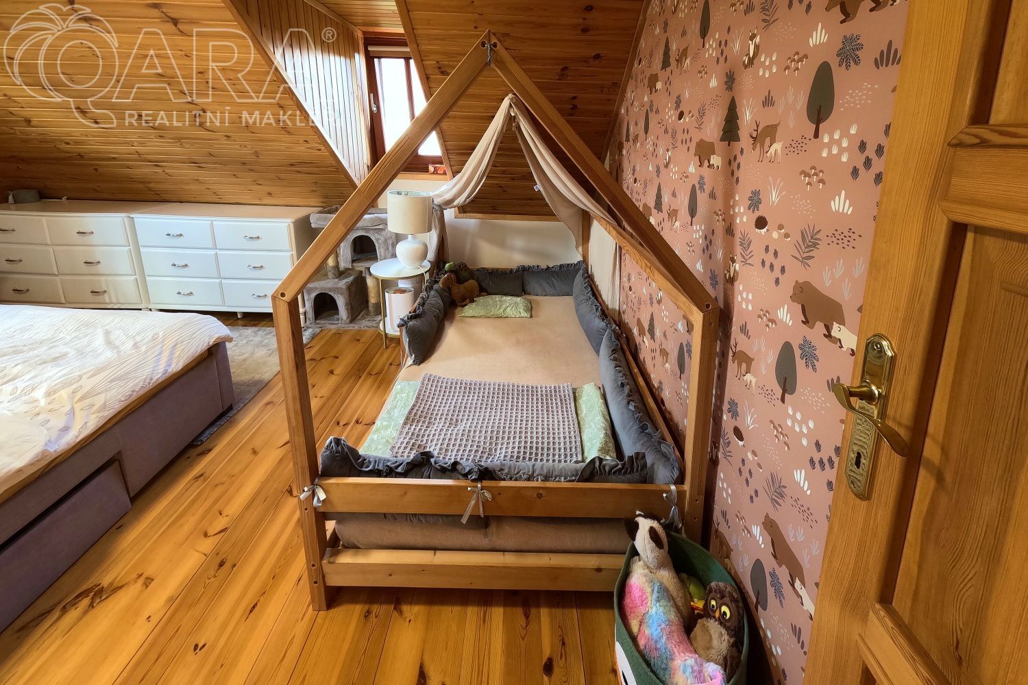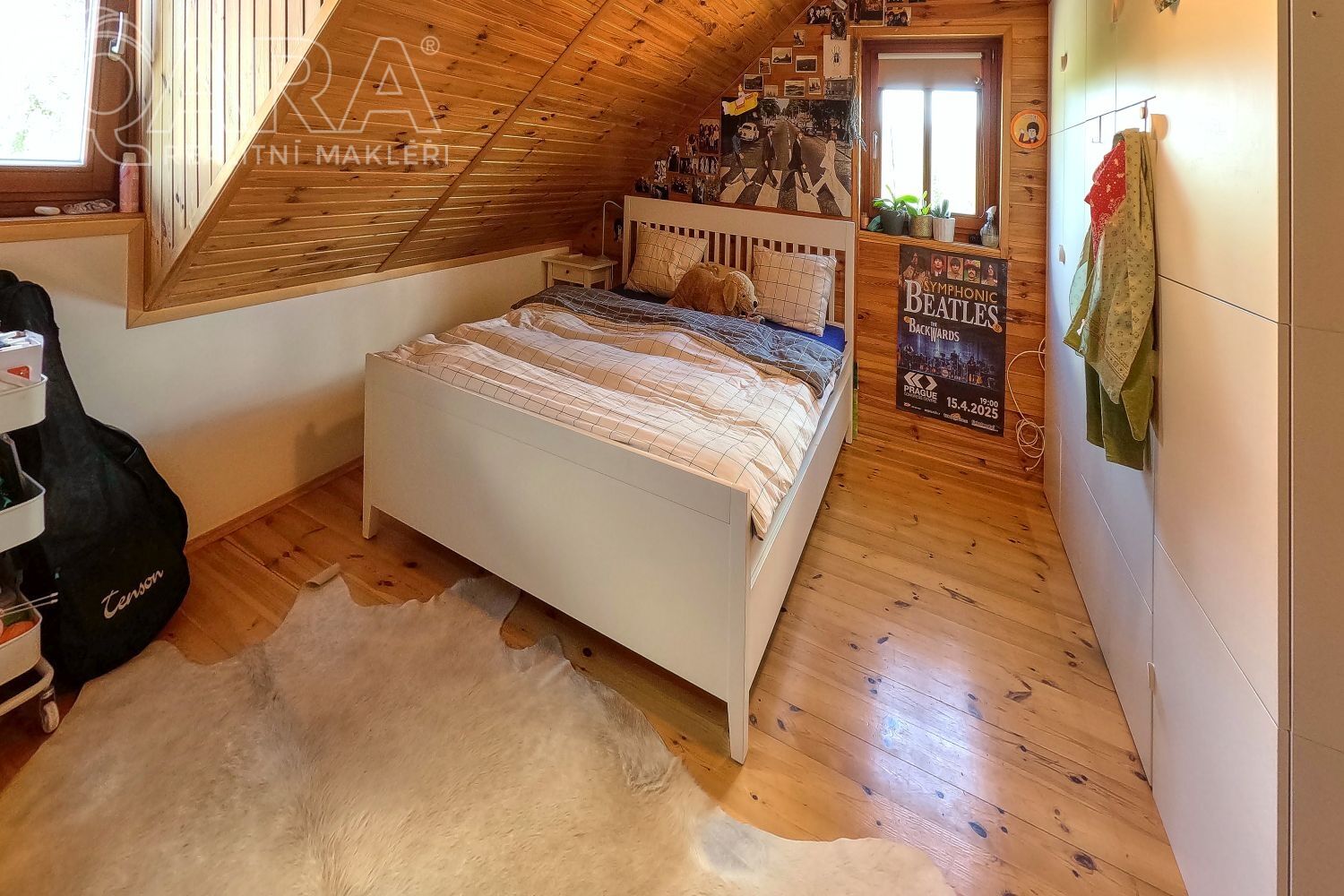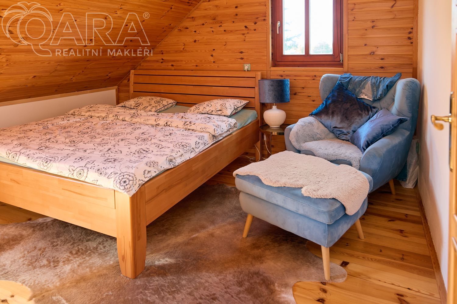 Tato roubenka byla zkolaudovaná v roce 2009 a v posledních dvou letech kompletně zrevitalizována. Nabízí komfort více jak 130 m2 celkové užitné plochy s dispozicí 4+kk a se dvěma koupelnami. Rovinatý pozemek nepravidelného tvaru o velikosti 1750 m2 je s láskou a péčí upravovaný. Nabízí ostrůvky okrasných rostlin, zeleninovou část i ovocné stromy. Je tu vybudované přírodní jezírko i malý bazén. K dispozici je také chatka pro děti, malý dřevěný sklad a samostatný dřevník.